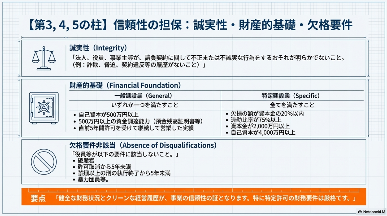 ※特定建設業の場合は、「資本金2,000万円以上」「自己資本4,000万円以上」など、非常に厳しい財務要件をすべて満たす必要があります。